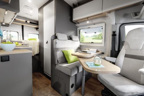 Sur un autre registre, les fourgons accueillent également un petit nouveau qui, contrairement aux trois modèles de la gamme Innovan, opte pour le Ford Transit. LMC tente le pari de la base américaine avec ce véhicule de 5,98 m baptisé Innovan 590, qui vient en complément des trois fourgons existants proposés avec le Fiat Ducato.