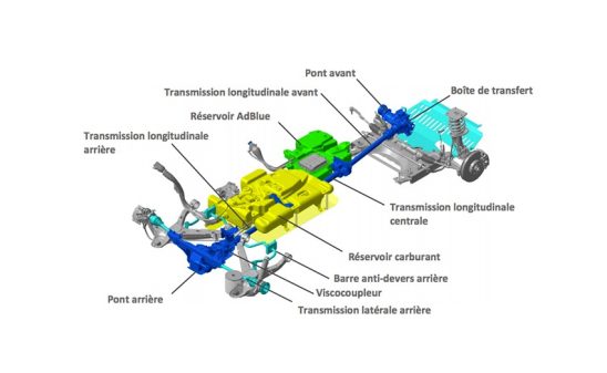 L'opération est effectuée directement dans les ateliers Dangel, à Sentheim (68). A la réception du véhicule, en provenance de l'usine Stellantis d'Hordain (59), les techniciens du spécialiste alsacien greffent une transmission supplémentaire, sous les dessous de l'engin, pour entraîner ses roues arrière en plus de celles de l'avant et ce, grâce à l'ajout d'un boîtier de transfert sur la boîte de vitesses d'origine. La connexion s'effectue à l'aide d'un viscocoupleur piloté qui permet d'évoluer automatiquement en deux ou quatre roues motrices, selon les conditions de circulation. L’adhérence est optimisée à tout instant par un contrôle de traction électronique couplé à un système ESP spécifique.