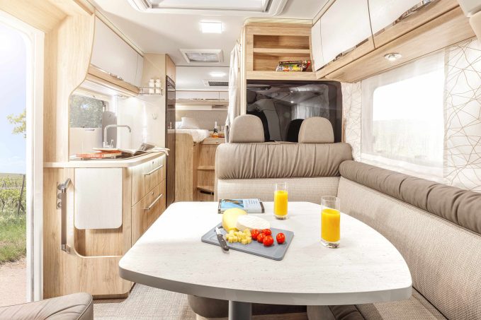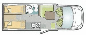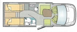 Le T 676 EB (ci-dessus) se distingue par la position latérale droite du bloc-cuisine, reprenant ainsi le plan classique d'un fourgon aménagé.