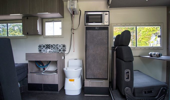 Pour la toilette, sont prévues une douche à l’italienne ainsi qu'une vasque de lavabo amovible pour libérer un maximum d'espace et simplifier la circulation à bord, notamment vers les WC.
