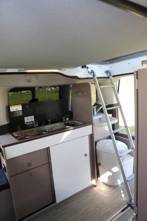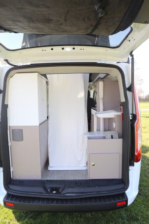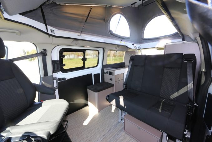 En ce qui concerne les vans, là aussi Bürstner bouge ses lignes. La série Copa s’étoffe d’un modèle baptisé C530, utilisant le Ford Transit Custom de 5,36 m de longueur. Le choix de ce gabarit allongé est dicté par le fait d’embarquer à bord un espace sanitaire avec WC et douche (avec un receveur amovible). Outre ce poste, il dispose d'un salon en partie avant composé d'une banquette convertible en couchage double. Il vient seconder celui dissimulé en pavillon.