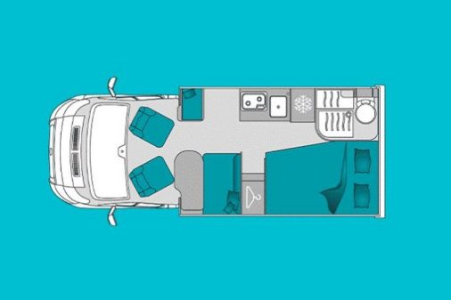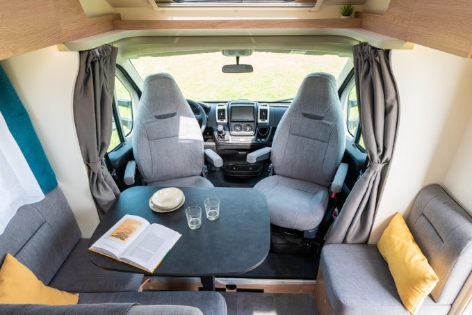 Le salon conviendra à 4 personnes grâce à sa banquette en L, ses sièges de cabine pivotants et son siège près de la porte de cellule. Ce 60F devient donc le cinquième profilé de la marque. Il endosse surtout le rôle d'entrée de gamme de la marque avec un prix à partir de 52 900 €, soit le moins cher des camping-cars Joa Camp.