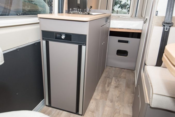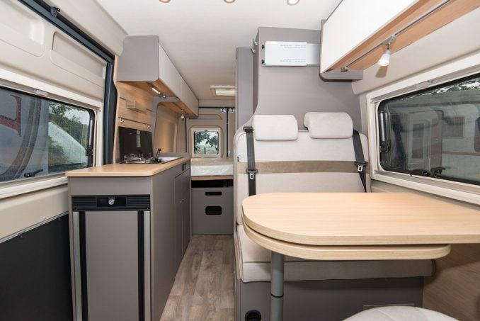 Ainsi ce LMC adopte dans son habitacle un lit transversal arrière sur soute. Il profite d'un matelas de 157 x 197 cm reposant sur un sommier à lattes tripartites. Le pavillon est ceinturé de placards de rangements. La cuisine, logée à l'entrée, dévoile un ameublement de bonne dimensions et pourvu d'un bon niveau d'équipement à commencer par un frigo à double ouverture positionné en façade. La salle d'eau fait face à cette kitchenette. Ce poste sanitaire profite d'une baie pour l'aération et la luminosité. En partie avant, on retrouve le classique salon composé d'une banquette en L et des sièges du poste de conduite. Ce fourgon revendique une charge utile importante de 600 kg... malgré une homologation d'origine de PTAC de 3,3 tonnes. Il est commercialisé à partir de 48 930 € avec la motorisation 2.2 l de 140 ch.