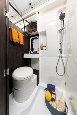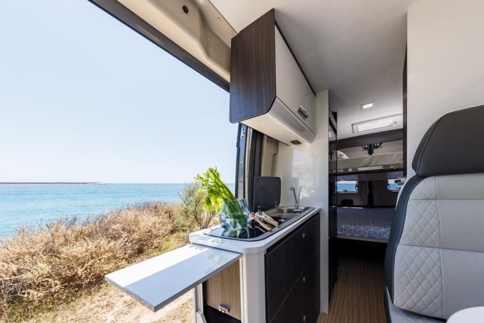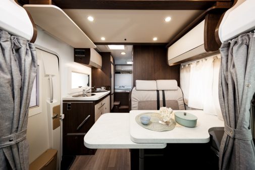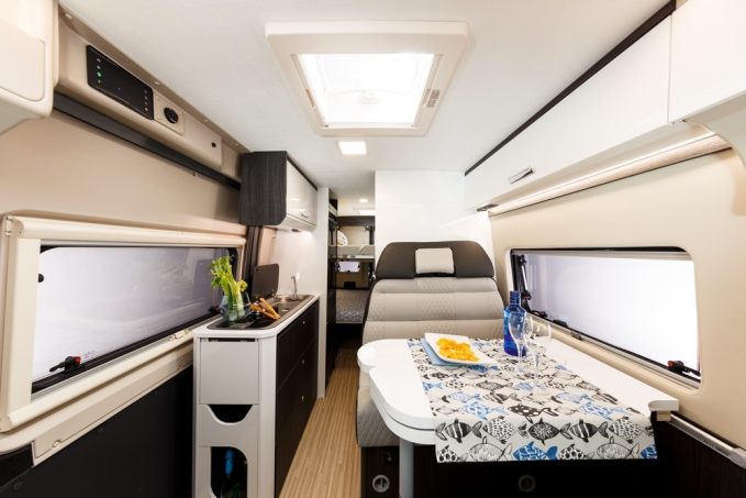 Faut-il encore présenter le Tessoro 440 Up? Depuis son lancement, ce profilé ne cesse d’occuper la place de best-seller de la marque espagnole. Il séduit en particulier les primo-accédants. Avec ce modèle, Benimar avait insufflé un vent nouveau sur le secteur du camping-car en créant un modèle “prêt-à-partir” identifié par l’appellation “Up”. Ce Tessoro est donc livré avec un important niveau d’équipements (panneau solaire, store extérieur) et un kit constitué de cales, d’une rallonge électrique avec raccords européens, d’un tuyau d’eau et même du produit pour les toilettes. Le gabarit compact du Tessoro 440 Up le rend maniable. Avec ses 6,34 m de longueur, ce profilé est toutefois plus encombrant de 35 cm que le Benivan 120 Up auquel nous le confrontons. A l’intérieur, nous trouvons un lit transversal de 131/109 x 203 cm. Ce couchage est réglable en hauteur électriquement. Le volume de la soute peut ainsi varier. Il est alors possible d’embarquer des vélos. Pour augmenter la capacité d’accueil nocturne, Benimar a installé un lit de pavillon électrique au-dessus du salon. D’une dimension de 74 x 191 cm, ce couchage conviendra à une personne. La dînette est aussi convertible en lit d’appoint. Mais son confort est assez spartiate à l’usage. Le Tessoro 440 Up est commercialisé sur Ford Transit au prix de 52 361 € avec la motorisation 2,0 l de 130 ch.