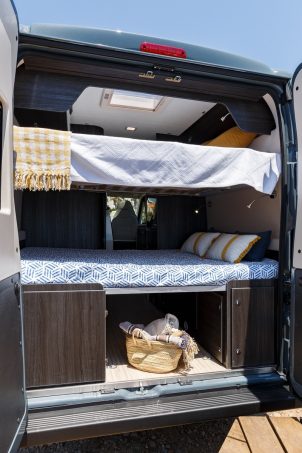 Nous avons souhaité opposer le Benivan 120 Up au Tessoro 440 Up pour plusieurs raisons. D’une part, parce que ce fourgon peut recevoir aisément 4 personnes pour la nuit. D’autre part, parce qu’il est aussi disponible en version “Up”, mais avec un niveau d’équipement différent de celui du profilé. La longueur du Benivan est de 5,99 m, soit 35 cm de moins que celle Tessoro. Avantage donc au fourgon pour la maniabilité. Concernant l’implantation, le Benivan 120 Up dispose de lits doubles superposés quand le profilé ne compte véritablement que deux lits permanents (2 + 1 place). La quatrième place couchage du profilé étant obtenue par transformation de la dînette. Avantage encore au fourgon dans lequel quatre personnes peuvent dormir. Les dimensions du lit double supérieur sont 140 x 186 cm ; le lit bas revendique des cotes de 130 x 180 cm. Reste qu’il ne faut pas souffrir de claustrophobie pour s’endormir sur ces couchages dont le tirant d’air est réduit. Sur ce point, le profilé gagne. Le Benivan 120 Up est commercialisé à 50 686 €. Ce qui le place en première position face à son concurrent profilé. De plus, la version Up du fourgon reçoit un panneau solaire, un store extérieur et un porte-vélos. Un équipement qui peut peser dans la balance.
