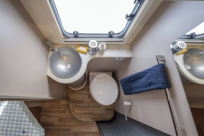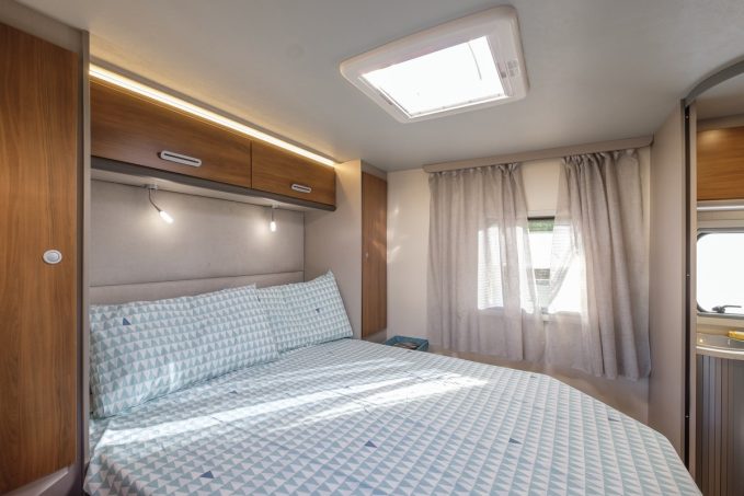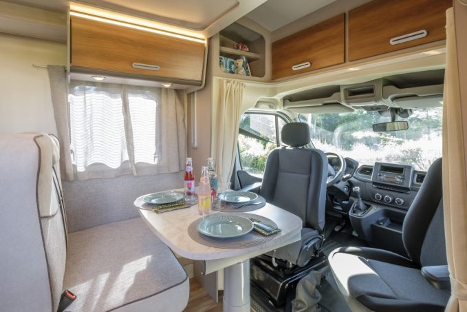 Sur le plan esthétique, le Hygge 69 Plus affiche certaines rondeurs qui font penser à une capucine. L’appendice avant permet de dissimuler, de série, un lit de pavillon de 122 x 200 cm, au-dessus du salon. Ce dernier se compose d’une banquette en L, d’un sofa latéral et des sièges de la cabine. Cette dînette permet de recevoir cinq convives à l’étape. Et autant de personnes peuvent voyager grâce à l’homologation en 5 places carte grise.