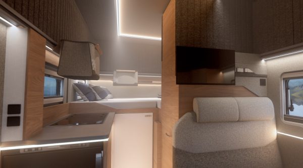 Le Tourer CUV 500 LT est identifiable, de l'extérieur, par sa porte d'entrée déplacée à l'arrière. Cela permet de libérer un salon plus généreux, au centre, avec deux banquettes en vis-à-vis. Elles se transforment en un grand lit, pour la nuit. Lors de sa commercialisation, en mars 2023, le Knaus Tourer CUV sera proposé dans une série spéciale dénommée Tourer CUVision. Annoncé sous les 80 000 €, ce modèle aura droit à un bouclier avant peint, quatre jantes alu de 17 pouces, des sièges cabine chauffants, un régulateur de vitesse adaptatif et un détecteur de fatigue, sans oublier un réservoir d’eaux usées isolé et chauffé.