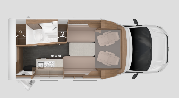 En s'inspirant d'un van à toit relevable, pour ses dimensions réduites, et d'un profilé, pour son confort et sa praticité à bord, le Knaus Tourer CUV tente de concilier au mieux les atouts de ces deux types de carrosserie. Il a aussi pour lui une hauteur réduite, en circulation, ne dépassant pas les 2,13 m. Une fois le toit rehaussé, elle passe à 2,75 m à l'étape. Après un gros travail de développement pour cette nouvelle gamme prometteuse, les techniciens du constructeur allemand semblent être parvenus à un compromis intéressant. Il se concrétise par la sortie de deux modèles inédits dans la collection 2023 de Knaus.