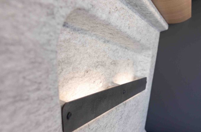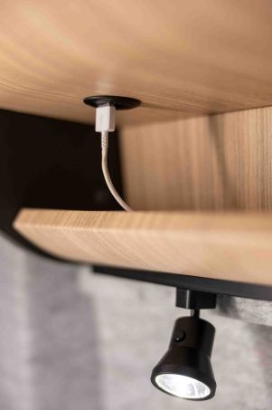 Le revêtement aspect feutre V-Flex gris du pavillon et des parois latérales, combiné à la teinte moderne des portes de placards, participent également à cette sensation de résider dans un espace aéré. Sensation décuplée par l'importante hauteur intérieure qui atteint les deux mètres.