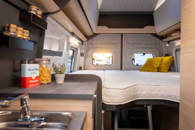 Les couchages sont tous constitué d'un sommier à lattes Goodside sur lequel est posé un matelas à mousse froide qui offre un excellent maintien lombaire. En plus des deux lits jumeaux de 2 mètres de long, le Maxia Van dispose d'un lit complémentaire pour un enfant, dans la cabine du conducteur.