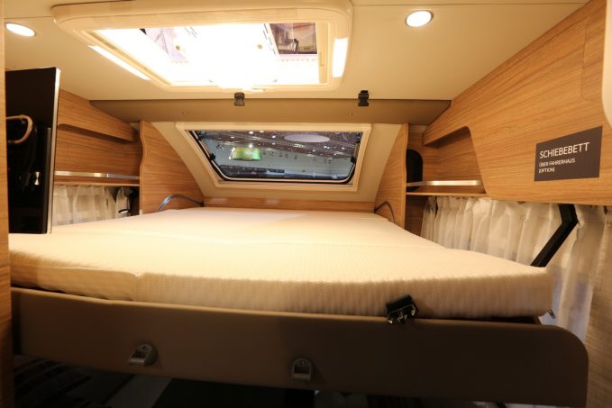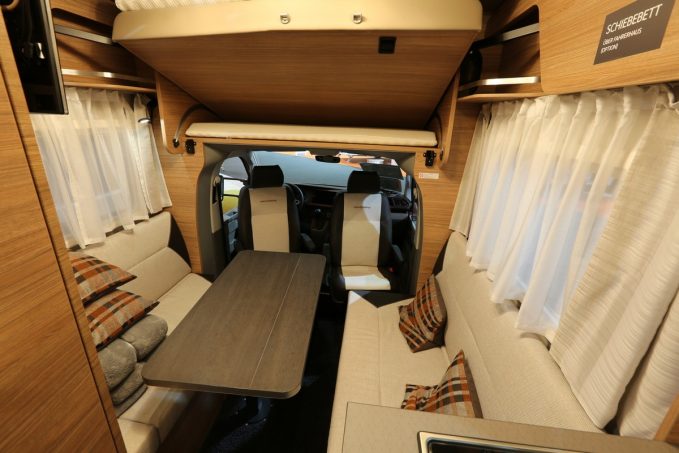 Le 500 LT propose un habitacle aéré qui rappelle la fonctionnalité des cellules amovibles. A bord, nous trouvons une salle d’eau arrière, une cuisine équipée et un salon face/face derrière le poste de conduite. La dînette est surmontée d’un lit dit Easy move, intégré dans la longueur qui (effectivement) se déplie aisément et rapidement.