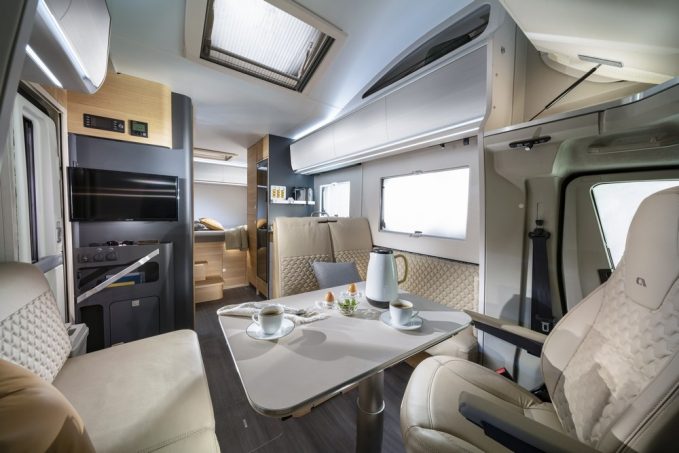 Les deux modèles sélectionnés pour la France et pour ce SVDL sont nettement différents et répondent à deux profils de camping-caristes et, par conséquent, de programmes. La première, baptisée Coral XL 650 SP, se destine davantage à des sportifs avec une implantation axée sur un vaste lit transversal arrière sur soute (150 x 210 cm). Le salon en partie avant s'apparente plus à celui d'un profilé avec sofa, banquette face route et sièges pivotants de la cabine, tout en profitant évidemment d'une hauteur sous plafond importante.