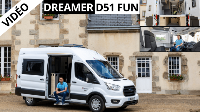 Découvrez en vidéo le nouveau fourgon de la marque Dreamer nommé D51 Fun. Avec ses 5,98 m de longueur, il inaugure l'utilisation du porteur Ford Transit.