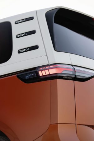 Le moins que l’on puisse écrire, c’est que ce véhicule 100 % électrique ne laisse pas indifférent, et son capital sympathie se situe déjà à un très haut niveau. Sa plastique a été spécialement étudiée et conçue pour rappeler la forme et l’esprit des Combi VW des années 50. L’énorme calandre en V, justement, sur laquelle trône l’écusson fait partie des similitudes flagrantes avec l’iconique Bulli. Sans oublier les vitres custodes à l’avant et les trois grilles d’aération arrière en trompe-l’œil qui collent au design de l’utilitaire légendaire.
