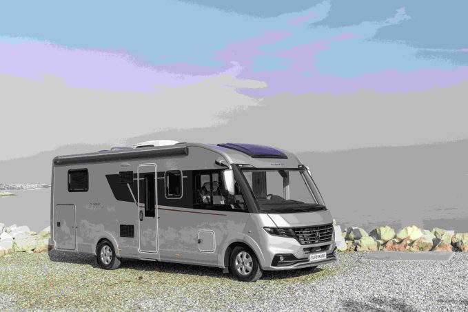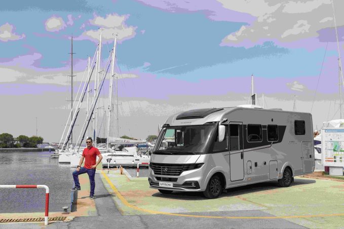 Le constructeur slovène a développé une gamme de camping-cars sur porteur Mercedes Sprinter, baptisée Supersonic. Dès l’extérieur, Adria innove et propose un véhicule aux allures très contemporaines, avec notamment une calandre très moderne et une face arrière qui bouscule les codes classiques de ce marché. Ses 7,80 m de long et 2,30 m de large pour 2,95 m de haut ne laissent que peu de place au doute quant à la nécessité de posséder le permis poids lourd pour conduire cet intégral dont le PTAC est de 4250 kg. Pour la conception de cet intégral premium, Adria s’est inspiré d’aménagements du même type que ceux des yachts. On retrouve donc à bord un design moderne, que la marque souhaite intemporel avec, dans le salon, des banquettes et sièges en cuir.
