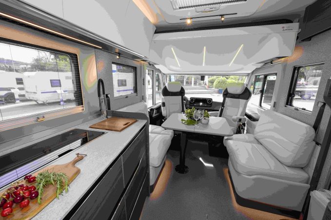 Le design intérieur est d’ailleurs personnalisable, puisqu’Adria propose à ses clients de choisir entre différentes couleurs de cuir, de coussins et des parois intérieures.