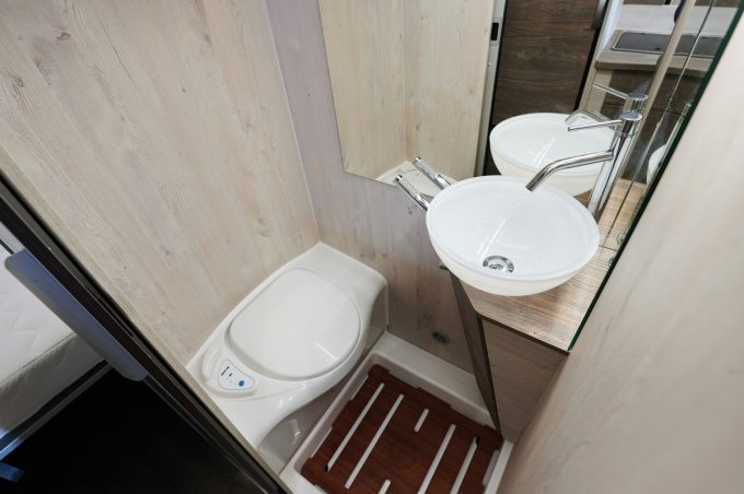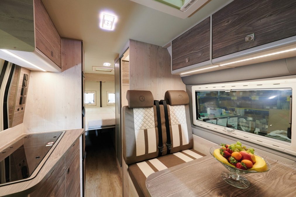 L’ensemble permet ainsi de conserver 4 couchages tout en disposant d’une grande soute garage. Sur un marché en quête de poids, Robeta opte pour une solution éco-responsable avec son mobilier dit AIR. L’ameublement est réalisé à base de bouteilles plastique recyclées plaquées sur des panneaux HPL. La marque revendique selon le modèle un gain de poids pouvant s’élever jusqu’à 220 kg.