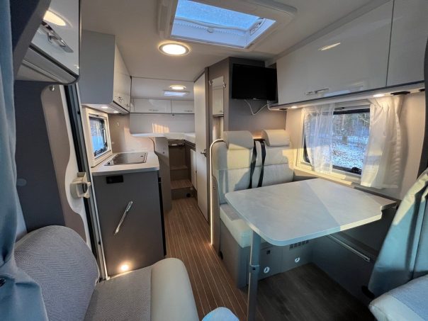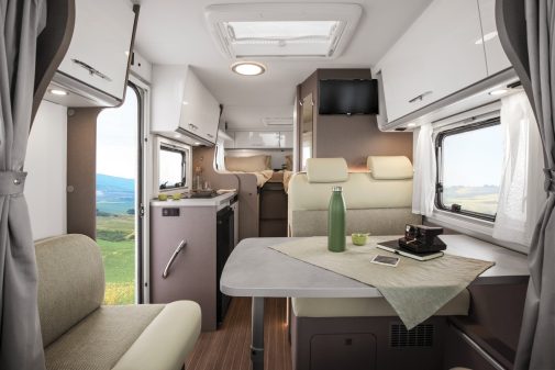 Autre différence, au niveau du salon, où le plus long des deux profilés hérite d’une banquette monoplace sur le côté. Le reste de l’aménagement intérieur est identique pour les deux véhicules.