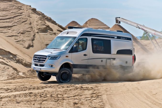En milieu de gamme, le Regent S en Sprinter propulsion de 170 ch, à lit transversal. Une transmission 4x4 et une motorisation à 190 ch sont envisageables, contre quelques euros de plus.