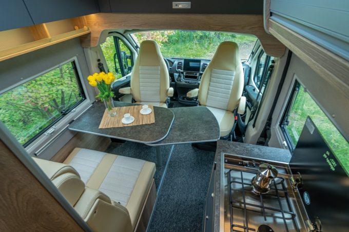Toujours sur Mercedes, en châssis-cabine, le Nova est disponible en configurations M (lit solo à l’arrière et couchage deux places en pavillon avant) ou EB (lits arrière jumeaux). Ces profilés utilisent une cellule en polyester. Idéale sur la déclinaison à quatre roues motrices qui permet de sortir des sentiers battus.