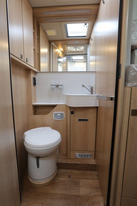 La salle d’eau en deux parties est bien faite. On trouve en effet un cabinet de toilette totalement indépendant de la cabine de douche. En revanche, il est possible si besoin de réunir ces deux espaces en un seul afin de profiter de ce poste sur toute la largeur du véhicule. Côté mécanique, le moteur Mercedes se montre d’autant plus agréable qu’il est associé à une boîte automatique à 9 rapports performante.