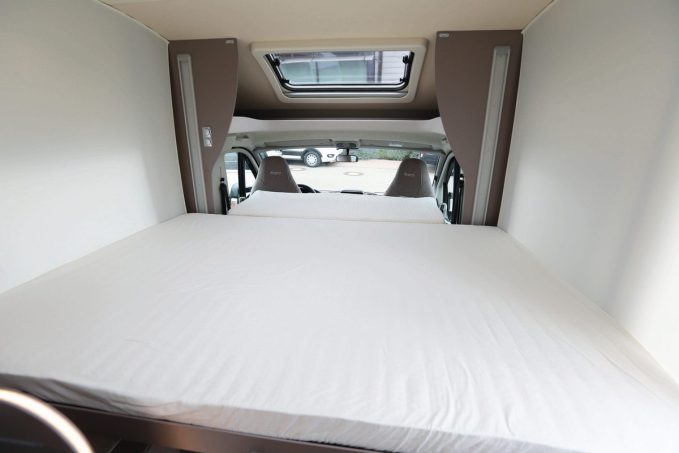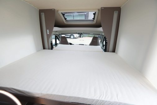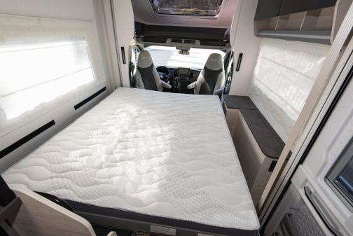 Cette implantation très prisée sur le marché est celle dite "sans lit au plancher". Le couchage a simplement pris de la hauteur. Invisible en journée, il laisse ainsi de la place à un grand salon. Cette astuce permet de contenir le gabarit des véhicules. Au point parfois de concurrencer les fourgons aménagés. Zoom sur 3 profilés dont le lit de pavillon est le seul couchage permanent.