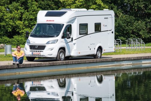 C’est dans la série Just90 spécialement créée pour célébrer ses 90 ans, que le constructeur Dethleffs propose son seul profilé sans lit au plancher. Ce modèle est le Just90 T6762, bridé sur le châssis-­cabine Citroën Jumper (Fiat Ducato, en option) et proposé à partir de 69 990 €. Quant à son gabarit, celui-ci est raisonnable puisqu’il mesure moins de 7 m de long. L’implantation est des plus classiques, mais se révèle efficace et parfaitement en phase avec les attentes du marché.