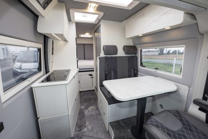 Robeta revendique une large diversité du catalogue et de nombreuses possibilités de personnalisation, via le truchement d’options parfois inédites, comme la banquette deux places pivotante en cabine. Point d’importance, également, la volonté d’innovation au niveau des matériaux avec le mobilier AIR, composé pour partie de bouteille en plastique recyclées.