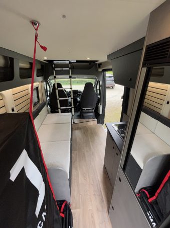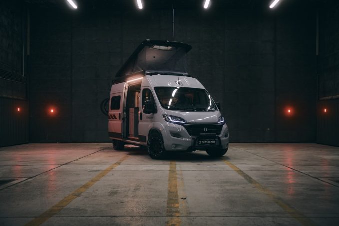 CrossCamp change d’envergure ! Avec ce nouveau produit, la marque allemande vient clairement jouer dans la cour des grands. En effet, nous sommes ici en présence d’un fourgon compact (5,41m), reposant sur Peugeot Boxer ou Opel Movano (le modèle de pré-série, ici en photo, est basé sur leur cousin Fiat Ducato) présentant un aménagement surprenant faisant la part belle au sport et à l’espace.