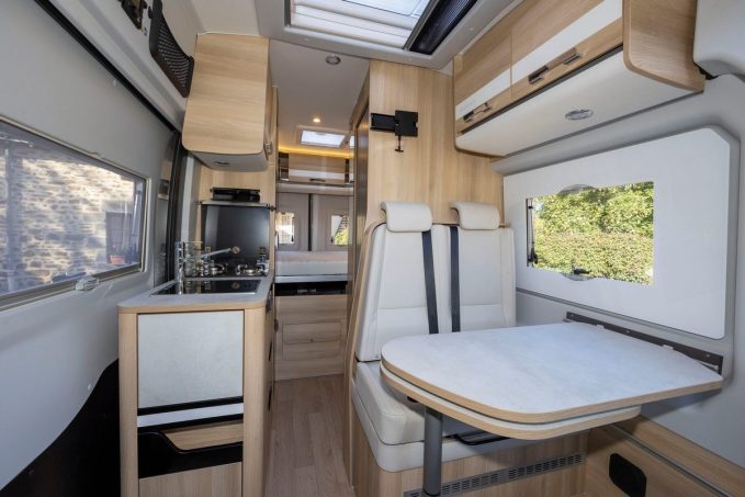 Annoncé depuis près d’un an, lors du salon de Düsseldorf, le fourgon A603G entre enfin en phase de commercialisation. Afin de rendre ce fourgon de 6 m de long plus sportif, Pilote l’a équipé d’un châssis Ford Trail, avec une motricité renforcée, 170 ch sous le capot et une boîte de vitesse automatique. À l'intérieur, l'aménagement est plutôt classique avec une banquette face route, un bloc cuisine avec réchaud au gaz deux feux, évier et réfrigérateur à ouverture à coulisses se trouve en bout de meuble. La salle d’eau se compose d’un WC, d’un lavabo et d’une douche, le tout se ferme avec une paroi coulissante. Le couchage arrière est un lit transversal (143 x 187 cm) haut perché, qui permet d’offrir une très belle soute XXL.