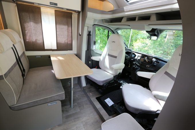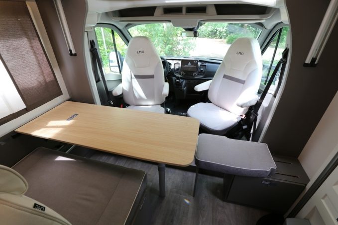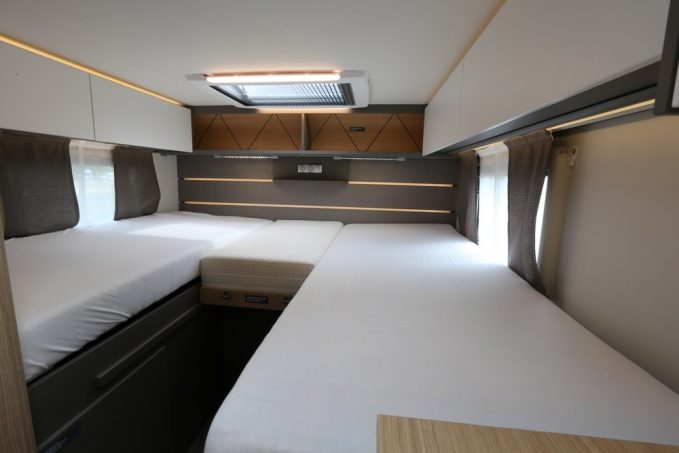 Le mobilier profite d’une conception spécifique qui autorise les dirigeants de LMC à positionner le Tourer Lift H664G parmi les profilés les plus légers du marché. L’implantation est tout à fait classique avec notamment en partie arrière, une chambre recevant des lits jumeaux sur soute garage. Les dimensions sont généreuses et ses deux couchages peuvent si besoin être réunis en partie.
