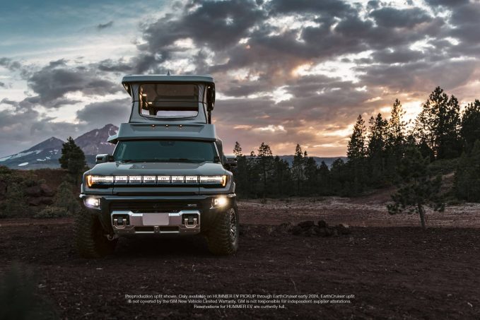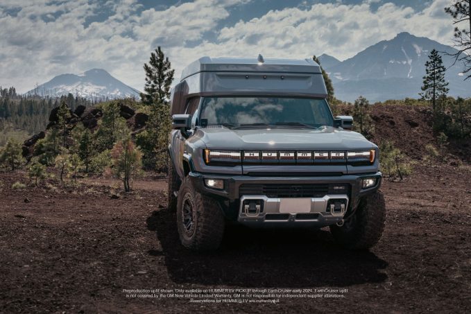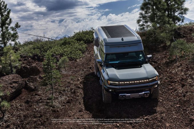 L'aménageur américain n'en n'est pas à son coup d'essai ! Earthcruiser est une entreprise spécialisée dans l'aménagement de véhicule dits "extrêmes" en camping-car. Il suffit de jeter un coup d'oeil à leurs réalisations pour se rendre compte de l'ampleur de leurs compétences. Cette fois-ci, ils s'attaquent pour la première fois, à l'électrique, avec le célèbre pick-up Hummer de la marque GMC.