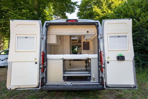 Enfin l'arrière du véhicule laisse entrevoir une belle soute surmontée par un grand lit transversal.