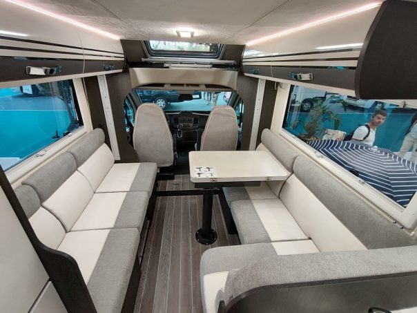 La marque Roller Team a profité du SVDL pour dévoiler son profilé 274 TL Selekt. Avec son programme familial clairement revendiqué, le constructeur toscan propose, en prime, un véhicule pourvu d'une riche dotation standard. Ainsi, ce 274 TL Selekt sur Ford Transit bénéficie de la motorisation 2,0 l de 170 ch avec boîte auto 6 rapports. Toutes les aides à la conduite sont également disponibles avec, entre autres, le freinage d'urgence associé à la caméra d'assistance de pré-collision, le capteur de pression des pneus, le dégivrage du pare-brise, l'allumage automatique des feux... Pour le confort à bord, Roller Team mise sur le panneau solaire de 120 W de base, la caméra de recul. En l'état avec ce fort niveau d'équipement, ce profilé est commercialisé à 68 290 €.
