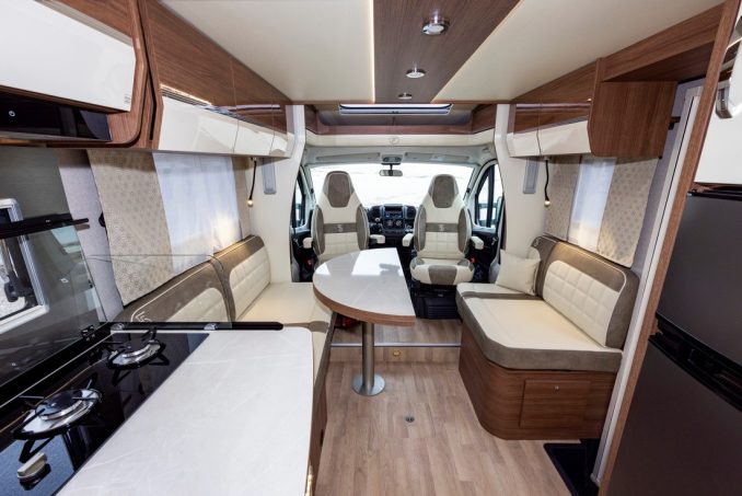 Nous l’avons vu au début de ce dossier, les modèles sans lit au plancher constituent une tendance forte dans les collections 2024. Mais il est une autre disposition qui continue d’occuper la première marche du podium des ventes. Il s’agit des camping-cars pourvus de banquettes latérales en vis-à-vis (voir la photo de couverture). Cette disposition permet de profiter d’un vaste salon, agréable à vivre et surtout très convivial, terme non galvaudé. Selon les dimensions des banquettes, quatre à huit convives peuvent s’y retrouver. La salle d’eau “2-en-1” constitue aussi une récurrence chez les constructeurs. Il est vrai que cet espace permettant de disposer d’une cabine de douche indépendante, d’un cabinet de toilette isolé ou d’une vaste pièce d’eau réunissant les deux fournit un confort d’utilisation extrêmement apprécié.