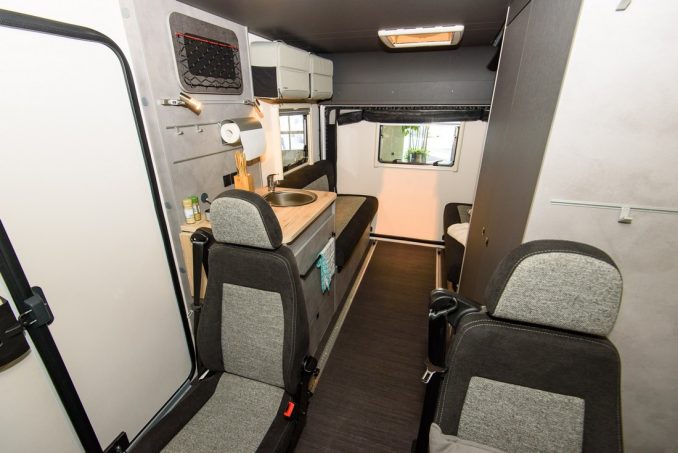 En option, deux sièges automobile sur rails peuvent augmenter la capacité d’accueil routier, même si l’homologation est prévue de base pour quatre personnes. Yoka se veut modulable à l’envi et à destination, pourquoi pas, des sportifs, des primo-accédants voire des vanlifers qui n’auraient pas le goût ni le désir d’aménager leur propre véhicule. Bref une autre vision du camping-car !