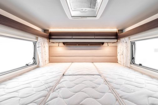 Le constructeur Toscan Rimor possède un large catalogue et offre donc un choix multiple. Entre capucines, profilés et fourgons, les amateurs de camping-cars sont conquis. Ici, nous vous présentons un profilé issu de la gamme Seal : le 95 Plus. Ce dernier est bridé sur le châssis cabine du Fiat Ducato. Mesurant 7.35 mètres de longueur, ce profilé dispose de lits jumeaux. De nombreux placards de pavillon sur la partie supérieure. Notez que la soute est même accessible depuis le coin chambre, grâce à la trappe se situant au centre.