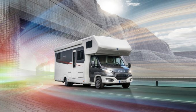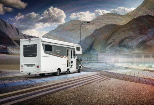 Le luxe n’est pas uniquement l’apanage des intégraux et autres Liners. Très appréciée des camping-caristes allemands, la capucine est bien souvent à l’honneur sur le secteur Premium, avec des véhicules poids lourds reprenant tous les atouts d’un Liner, mais avec une “vraie” chambre au-dessus du poste de conduite. Preuve en est avec le dernier-né de Concorde, le Cruiser 891 LR proposé dans une série spéciale Diamond Edition. Elle est reconnaissable à la cabine gris métallisé Leipzig du porteur, assortie au décor de carrosserie sur les flancs. Malgré une hauteur de 3,55 m de haut et son appendice à l’avant, la silhouette de ce véhicule reste élégante.