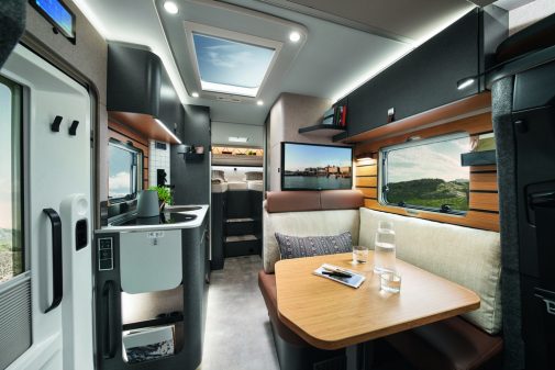 Il est possible d'opter pour l’ambiance "Velvet Ash", un décor bois sombre associé à des revêtements de parois clairs. L'objectif est de profiter d'un intérieur résolument chaleureux. L’ambiance "Native Bamboo" séduit avec ses touches de bambou très tendance, et rappelle indéniablement l'univers inspirant du Venture S. La grande nouveauté pour ce ML-T 570 passe aussi par des équipements inédits afin d’accroître l’autonomie, comme l’intégration du nouveau Smart Battery System 2.0, de l’Hymer Connect App pour gérer les fonctionnalités de l’espace de vie et des équipements en option, d’un filtre à eau ou deux panneaux solaires de 95W… Ce ML-T 570 est tout de même commercialisé à partir de 104 220 € avec la motorisation 2,0 l de 150 ch.