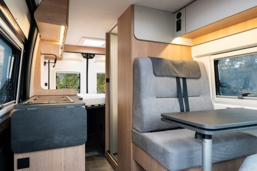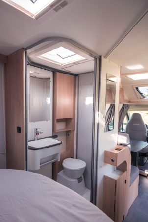 Poursuivons l’exploration de la collection du côté des fourgons, cette fois. On y découvre un coin chambre plus grand. On passe de 1,33 à 1,43 m, grâce notamment à l’optimisation de la salle d’eau.