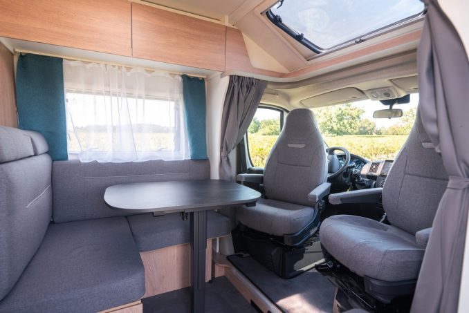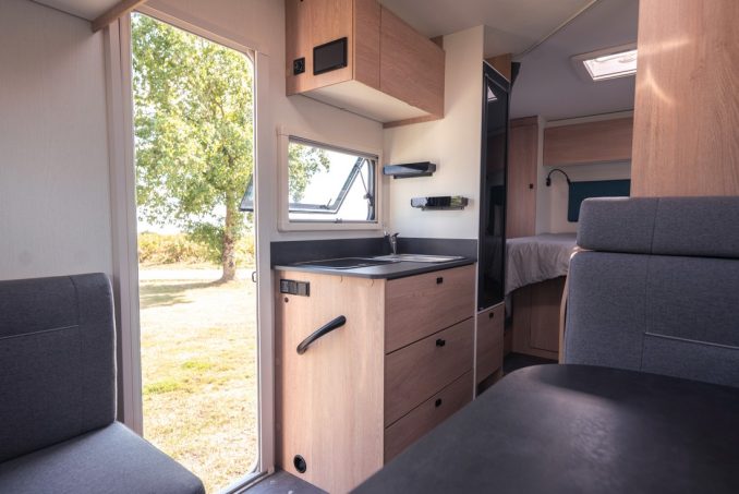 Les améliorations concernant les profilés portent sur la carrosserie. De nouveaux stickers bleu turquoise parent ces modèles. A l’intérieur, de nouveaux sièges ont été installés. Dans les tons gris, ils apportent une touche sobre et neutre qui rappelle le coloris de la table et du plan de travail de la cuisine. A l’arrière, une autre version de lits jumeaux fait son apparition. Enfin, cinq petites nouveautés se glissent dans les profilés Joa Camp : l’ajout d’un porte-épices dans la cuisine, un miroir dans la salle d’eau, un nouveau rideau du côté du salon, une nouvelle sellerie et enfin une table papillon disponible en option.