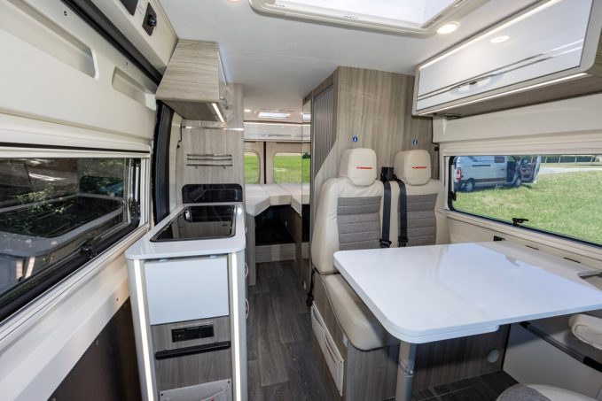 Et depuis quelques années, Randger utilise le Renault Master avec cette saison trois propositions. On connaissait les R559 (lit transversal/5,57 m) et R620 (lits jumeaux/6,22 m), place désormais au R621 qui est un condensé des deux en somme. Effectivement, sur la même longueur que ce dernier (6,22 m), il reprend l’implantation du premier dans des proportions plus importantes… évidemment.
