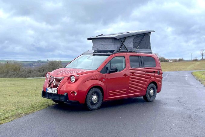 Le concessionnaire allemand Caravan Grebner a fait parler de lui lors du CMT Stuttgart en dévoilant un élégant van à toit relevable affublé d’un kit carrosserie Caselani. Ce dernier était jusqu'à présent plus connu pour ses kits rappelant le Type H d'antan à travers un fourgon chez Pössl sur Jumper ou plus récemment chez Citroën directement sur SpaceTourer. Pour le modèle présenté ici, c'est la base Citroën e-Berlingo qui a été choisie. Et pour la silhouette, difficile de ne pas remarquer ce superbe look de 2CV Fourgonnette, grâce au kit italien, avec cette silhouette au design originel parfaitement préservé.