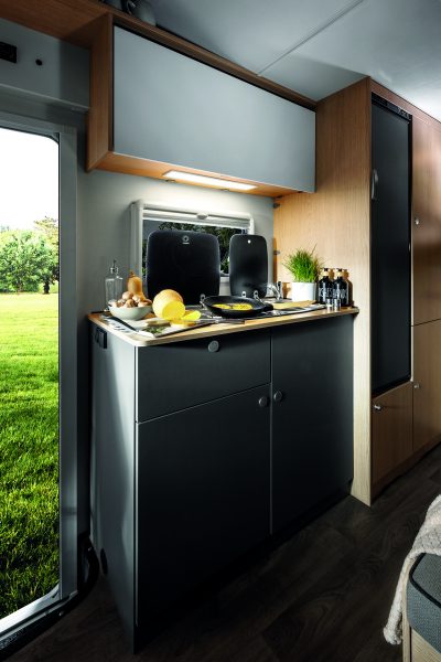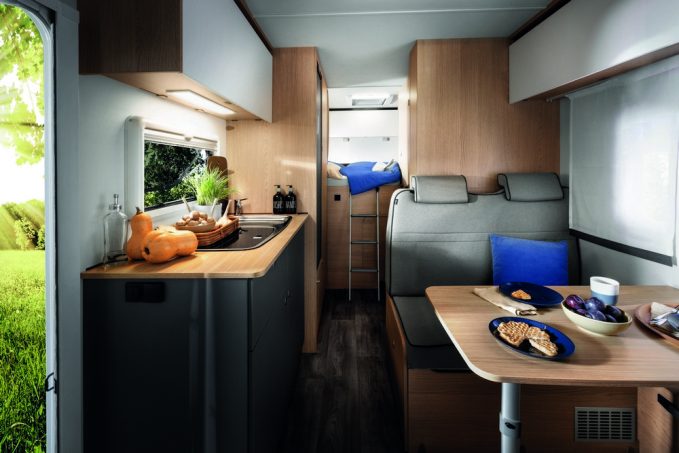 Cette capucine reçoit un combiné réchaud/évier, ce qui permet de disposer d'un vaste plan de travail. Toujours dans la cuisine, on profitera d'un grand réfrigérateur de 141 l attenant à une grande penderie. Le prix de cette capucine LMC avec la motorisation de base de 2,2 l et 140 ch s'élève à 71 500 euros.