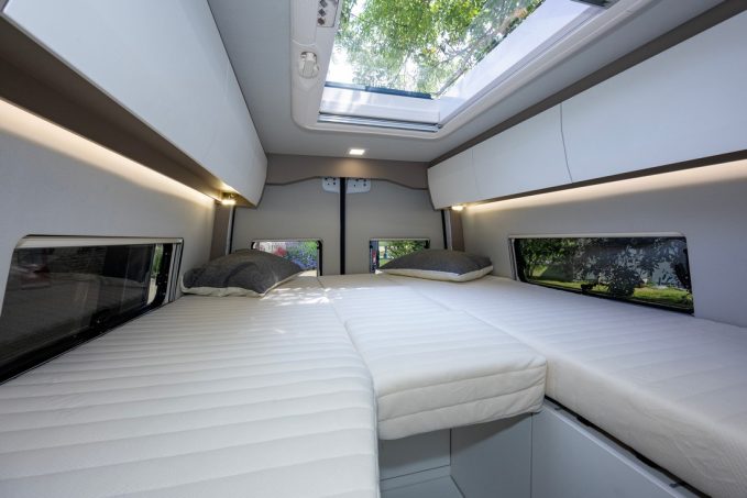 La marque allemande Frankia, davantage réputée pour ses intégraux PL, s’est attaquée au secteur du fourgon avec de grandes ambitions sur le segment Premium. Pour la France, la série Yucon utilise le Mercedes Sprinter. Il y a déjà de quoi faire avec trois implantations déclinées sur deux longueurs. Le Yucon 6.0 et 6.0 BD profitent d’un gabarit de 5,93 m avec respectivement des lits jumeaux et un couchage transversal. Sur 6,97 m, Frankia propose les Yucon 7.0 (lits jumeaux). Cette saison, ces trois modèles peuvent être proposés dans une version baroudeuse K-Peak, proposant notamment la transmission intégrale.