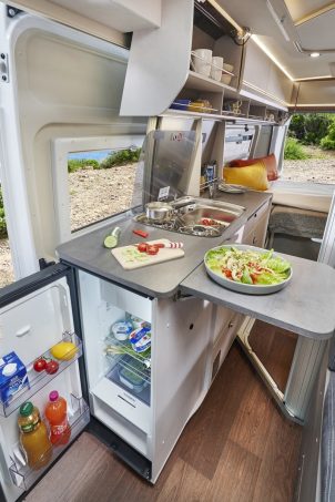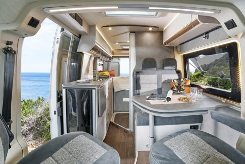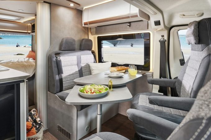 A l'étape, l'aménageur allemand reste dans cette logique de modularité en proposant si besoin un toit relevable pour deux personnes pouvant être associée à une dînette convertible. D'une manière générale, ce fourgon de 5,99 m peut s'enorgueillir de recevoir jusqu'à cinq personnes à bord, à l'étape et au roulage. Une fois encore, Pössl frappe un grand coup !
