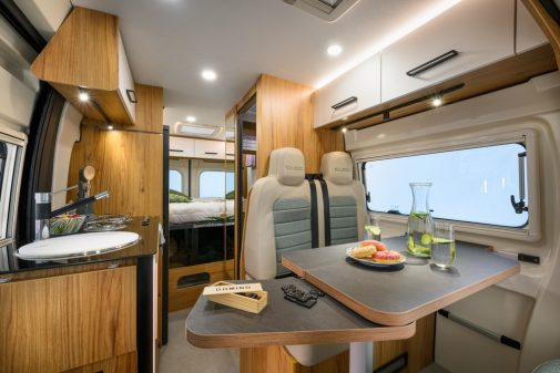 Concernant la série sur Fiat Ducato, Font Vendôme s’appuie sur un quatuor reprenant des implantations phares telles que le Leader Camp (5,99 m avec lit transversal), le Leader Camp Duo (5,99 m avec lits double superposés), le Duo Van (6,36 m avec lits jumeaux) sans oublier l’historique Bel Horizon (5,41 m avec lit de pavillon). Ce dernier est le modèle le plus ancien que compte la marque dans son catalogue. Pour autant, son implantation originale avec sa cuisine en L en partie arrière attenante au cabinet de toilette, son grand salon surmonté d’un vaste lit de pavillon et son gabarit ultra-compact… est parfaitement exécutée. Le Bel Horizon traverse les années sans perdre son aura.