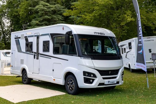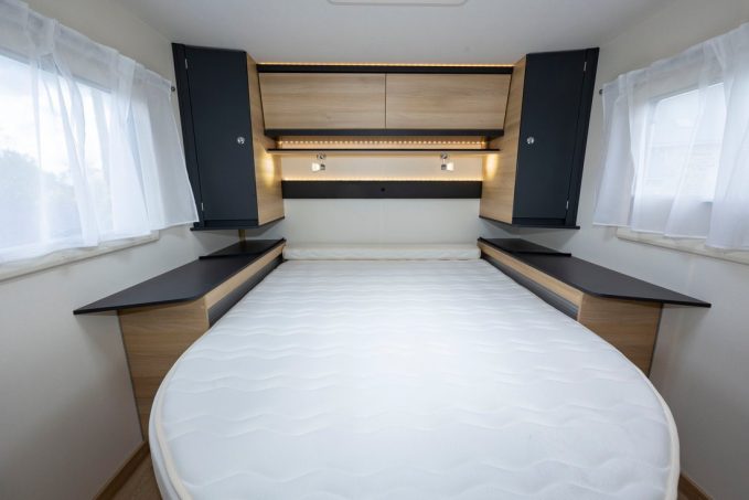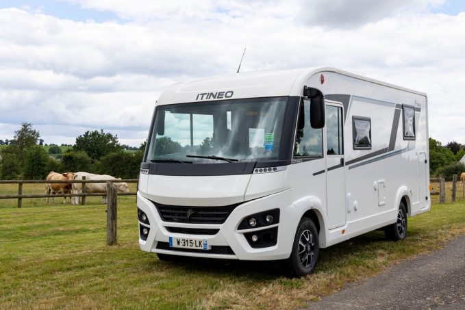 Réputé pour ses intégraux premiers prix, Itineo dispose dans son catalogue de modèles classiques et étroits. Le CM660 fait partie de cette seconde catégorie, avec une cellule de 2,19 m de large réalisée sur le châssis-auvent du Peugeot Boxer. Cet intégral profite d’un couchage central de 140 x 190 cm, complété, en partie avant, par un lit de cabine de 140 x 188 cm. Entre ces deux zones nocturnes, un salon avec une banquette en L, une cuisine avec un grand réfrigérateur ainsi qu’un cabinet de toilette modulable.
