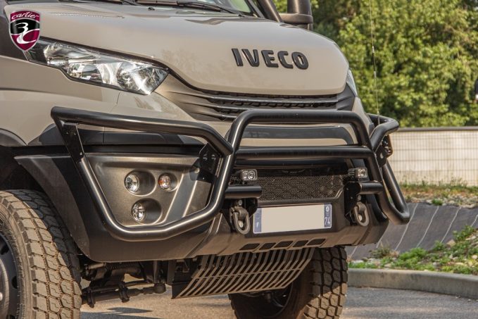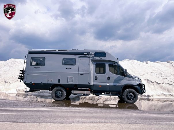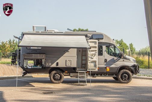 En témoigne ce véhicule double cabine sur Iveco Daily 4x4 à l’esprit baroudeur et au côté hors-norme. Ce partenariat de prestige entre ces deux sociétés réputées d’Auvergne-Rhône-Alpes place la barre très haute en termes de gabarit mais surtout en termes de qualité. Ce véhicule est le seul en effet à être conçu avec une cellule autoportante monobloc 100 % polyester. Cette fabrication est l’œuvre du carrossier lyonnais 3C Cartier qui ne cesse de relever des défis fous en matière de véhicules de loisir n’hésitant plus à développer des modèles sur Iveco Daily, Mercedes Sprinter à 4 ou 6 roues, voire travailler sur des réalisations usant de tracteur PL digne du transport de marchandise type Mercedes Actros.