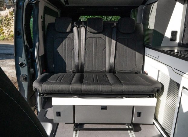 Si l’équipement de cette série spéciale Extrême est particulièrement intéressant, elle est également l’occasion pour Hanroad de dévoiler une toute nouvelle banquette coulissante. Plus facile à manipuler, grâce à un levier permettant de la verrouiller/déverrouiller d’une seule main, elle est également plus polyvalente puisqu’elle dispose d’une assise qui peut être avancée et d’un dossier réglable en inclinaison sur trois positions. Elle est aussi disposée plus bas dans l’habitacle, offrant ainsi plus de garde au toit, et propose une longueur plus généreuse en configuration couchage (192 cm contre 188 précédemment).